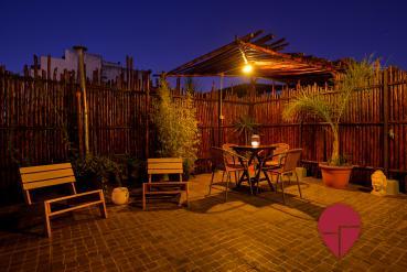 Terraza privada con ducha, mesa y sillas
