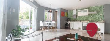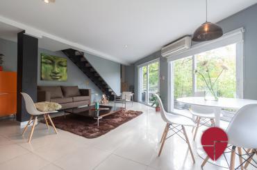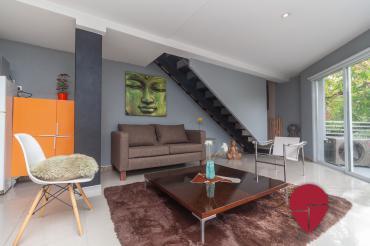 Fantástico duplex moderno de un dormitorio ubicado en el popular barrio de Palermo Soho, rodeado de bares y restaurantes de moda, boutiques de diseñadores independientes, y negocios de muebles y decoración. El departamento se encuentra en un segundo piso por escaleras, no hay ascensor. Es todo muy luminoso y silencioso gracias a sus amplios ventanales de doble altura y de doble vidrio. En el primer piso hay un lindo living-comedor decorado con muebles de diseño contemporáneo y salida a un lindo balcón. Hay un cómodo sillón, y una mesa de comedor para tres personas. También se encuentra una cocina integrada totalmente equipada y un toilette. Subiendo las escaleras, en el segundo piso, se encuentra un dormitorio muy amplio con buenos placards, un diván, una cama matrimonial tamaño queen o dos single según se requiera (se puede agregar una cama para una persona adicional si se requiere), y un baño completo integrado al mismo. Subiendo al tercer piso hay una lindísima terraza con mesa y sillas, una parrilla portátil, y una ducha, ideal para disfrutar de los días soleados. Fantástico loft moderno en excelente ubicación!