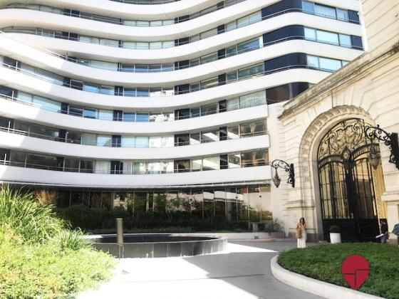 Espectacular departamento en un moderno edificio de gran categoría (Palacio Pax XXI), con balcón con fantástica vista al emblemático y elegante Palacio Paz y la Plaza San Martín. Posee seguridad 24 hs, cochera opcional, laundry, y membresía en el gimnasio que se encuentra en la planta baja con sector de aparatos, pileta, y salón para clases. Muy amplio, luminoso, y equipado con muebles de diseño de primera calidad. Posee un balcón corrido con una mesa y sillas y una privilegiada ista al jardín del Palacio y la Plaza San Martin. Living-comedor con un cómodo sillón, una mesa de comedor para cuatro personas, y un escritorio con biblioteca. El dormitorio está separado por un mueble divisorio y posee una cama matrimonial. El baño es moderno, amplio, con bañadera. La cocina está integrada y muy bien equipada.