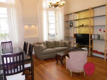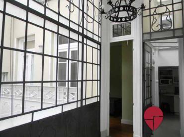Lindísimo y espacioso departamento ubicado en un edificio de estilo francés en Recoleta, en un área muy linda y cerca de avenidas con muchos medios de transporte (la parada de subte linea H que conecta con las demás lineas) y rodeada de restaurantes y negocios. El departamento ha sido todo recientemente reformado y decorado con muy buen gusto. Sus techos altos y pisos de madera crean una cálida atmósfera. El departamento está dispuesto alrededor de un aire y luz central con balcón que otorga la sensación de estar en una casa. Un gran hall de entrada con ventanales de vidrio partido le dan la bienvenida y conecta al living-comedor que ofrece un cómodo sillón y una mesa de comedor para seis personas. A continuación se encuentra el dormitorio principal con una cama matrimonial tamaño queen, excelentes roperos y un escritorio. Tiene un baño en suite con jacuzzi. El segundo dormitorio (también en suite con un baño completo) ofrece una cama amaño queen. Allí se encuentran las escaleras que suben a un entrepiso donde hay un ambiente con una cama single, y otro dormitorio con una cama para niños y un toilette. Pegado al segundo dormitorio, conectado a éste, se encuentra el tercer dormitorio con cama matrimonial. La cocina es completa y está muy bien equipada. Departamento espacioso y con estilo!